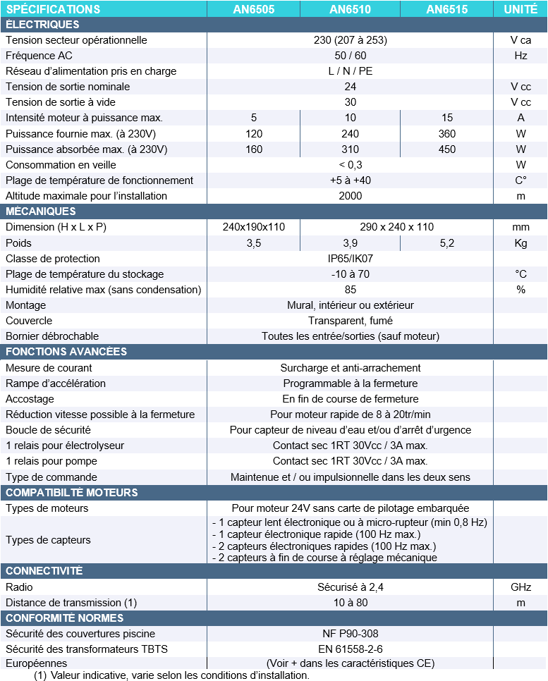 Ces coffrets sont en mesure de piloter tous les types de capteurs-moteurs existants sur le marché, soit les capteurs suivants :