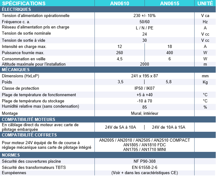 GAMME AN0600 ALIMENTATION