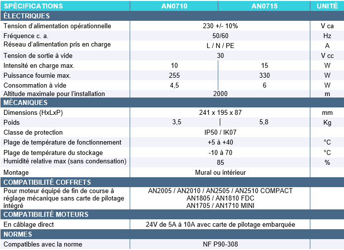 Coffrets AN1710/AN1810/AN2010/AN2510